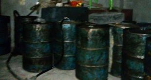 حمص-سانا ضبطت عناصر مديرية التجارة الداخلية وحماية المستهلك في حمص بالتعاون مع إحدى الجهات المختصة بقرية الفرحانية الغربية في منطقة تلبيسة بمحافطة حمص مستودعا بداخله 17برميلا وخزانين مملوأين بكمية تقدر بـ4200 ليتر من مادة البنزين معدة للاتجار غير المشروع. وأوضح …