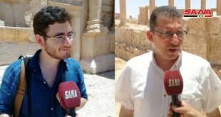تدمر-سانا وثق سائحان بريطانيان اليوم آثار الخراب والدمار الذي ارتكبه تنظيم داعش الإرهابي في تدمر وذلك خلال زيارتهما اليوم للمدينة واطلاعهما على المواقع الأثرية والأوابد التاريخية. السائح البريطاني أليكس الذي يعمل مدرسا للغة الإنكليزية ويتحدث العربية بطلاقة قال لمراسل سانا …