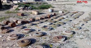 حمص-سانا خلال متابعتها عمليات تمشيط وتأمين ريف حمص الشرقي من مخلفات تنظيم “داعش” الإرهابي وفي إطار التحضير لعودة الأهالي إلى منازلهم التي هجرهم منها الإرهابيون عثرت الجهات المختصة اليوم على عشرات الألغام والعبوات الناسفة في مدينة السخنة ومحيطها “80” كم …