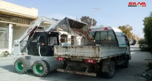 حمص-سانا تواصل ورشات وآليات مجلس مدينة تدمر تنظيف الشوارع الرئيسية والفرعية ورفع أكوام القمامة وترحيل الأنقاض التي خلفها تنظيم “داعش” الإرهابي قبل اندحاره من المنطقة. وأشار رئيس مجلس مدينة تدمر المهندس هاني دعاس في تصريح لمراسل سانا إلى أنه بعد …