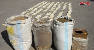 حمص-سانا ضبطت الجهات المختصة كميات كبيرة من الحبوب المخدرة والحشيش في إحدى المزارع بريف حمص الغربي. وذكر مصدر في الجهات المختصة في تصريح لـ سانا أنه “في إطار متابعتها الدقيقة لعمليات نقل وتهريب المواد المخدرة والإتجار بها وبناء على معطيات …