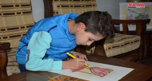 حمص-سانا علي سامر النقري طفل سوري يترجم بالرسم واقعه وأحلامه متجاوزا حدود الورق إلى أبعاد ثلاثية تجسد موهبته وقدرته بلوحات تجذب البصر وتبعث الدهشة. وبعمره البالغ عشر سنوات استطاع علي أن يتذوق الفن ويلون أفكاره وتصوراته بموهبة بدأت ملامحها تتضح …