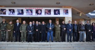 حمص-سانا نفذ طلبة جامعة البعث بحمص اليوم وقفة حداد على أرواح شهداء التفجير الإرهابي الذي وقع أول أمس بحافلة لنقل الركاب في شارع الأهرام بحي عكرمة بمدينة حمص والذين كان من بينهم عدد من طلاب وأساتذة الجامعة. ورفع المشاركون في …