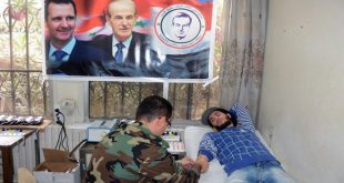 حمص-سانا دعما لجرحى وبواسل الجيش العربي السوري نظم تجمع /محبي القائد الخالد حافظ الأسد/ في حمص اليوم حملة تبرع بالدم في بنك الدم بمشفى الباسل الإسعافي بمشاركة حشد من المتطوعين. وفي تصريح لسانا أكدت مديرة مكتب حمص للتجمع صبا وسوف …