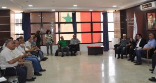حمص-سانا نظم فرع اتحاد الصحفيين في محافظة حمص اليوم حوارا مفتوحا بين عدد من الإعلاميين العاملين في وسائل الإعلام الوطنية وبين المعنيين بالشأن الثقافي في المحافظة وذلك في قاعة مديرية ثقافة حمص بهدف مناقشة الواقع الثقافي وسبل تطويره والارتقاء به. …