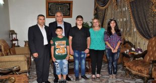 حمص-سانا كرم محافظ حمص طلال البرازي اليوم الطالب المتفوق احمد محمد وهبي لنيله العلامة الكاملة في شهادة التعليم الأساسي للعام الدراسي الحالي وذلك خلال زيارته اليوم لأسرته في حي وادي الذهب. ولفت البرازي خلال لقائه الطالب محمد وأسرته إلى أن …