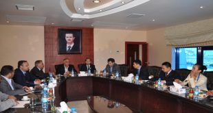 حمص-سانا بحث محافظ حمص طلال البرازي اليوم مع وفد جمعية الرابطة العربية الصينية برئاسة “تشين يونغ” نائب رئيس الرابطة والوفد المرافق افاق التعاون الاستثماري الاقتصادي بالمحافظة في مرحلة اعادة الاعمار. واشار المحافظ خلال لقائه الوفد في اجتماع بالمدينة الصناعية في …