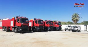 اللاذقية-سانا تسلمت محافظة اللاذقية أربع آليات إطفاء، وسيارتي إسعاف، وشحنة أدوية خاصة بالحروق،