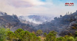 اللاذقية-سانا تتواصل لليوم الرابع على التوالي جهود فرق الإطفاء من أجل السيطرة على الحرائق وتطويق النيران التي اندلعت في العديد