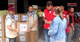 اللاذقية-سانا وزع الهلال الأحمر الإماراتي بالتعاون مع الهلال الأحمر العربي السوري ضمن مبادرة (لن ننساكم)