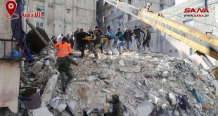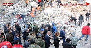 اللاذقية-سانا تتواصل الجهود الحكومية والمحلية في عمليات رفع الأنقاض والبحث عن مفقودين في المواقع المتضررة