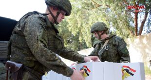 اللاذقية-سانا وزع مركز التنسيق الروسي في سورية مساعدات لعدد من أهالي ضاحية تشرين في مدينة اللاذقية، شملت 300 سلة غذائية.