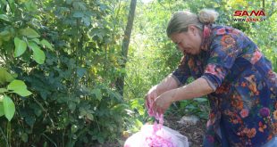 اللاذقية-سانا تعد انتصار ساتيك ماء الورد منذ ما يقارب 15 عاماً ويأتي مشروعها المنزلي الصغير كنوع من الاستمرارية لمسيرة والدتها