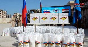 اللاذقية-سانا وزع مركز التنسيق الروسي في قاعدة حميميم اليوم نحو 5ر4 أطنان من المساعدات الغذائية المقدمة من روسيا