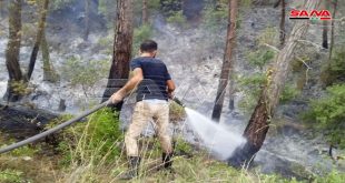فرق الإطفاء والدفاع المدني بمؤازرة من وحدات الجيش والأهالي تسيطر على جميع الحرائق بمحافظة اللاذقية