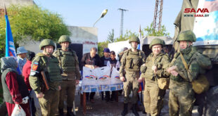 اللاذقية-سانا قدم عسكريون من مركز التنسيق الروسي في حميميم مساعدات إنسانية إلى أهالي قرية سنديانة في ريف محافظة اللاذقية.