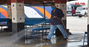 اللاذقية-سانا في إطار استعدادات محافظة اللاذقية لتامين نقل المواطنين إلى المحافظات الأخرى خلال الأيام الثلاثة القادمة تنفيذا لقرار الفريق الحكومي المعني بالتصدي لفيروس كورنا قامت ورشات النظافة في مجلس مدينة اللاذقية اليوم بتنظيف وتعقيم مركز كراج البولمان والحافلات ومكاتب قطع …