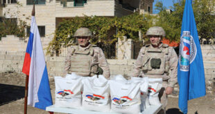 اللاذقية-سانا وزع عسكريون تابعون لمركز التنسيق الروسي في قاعدة حميميم مساعدات غذائية على أهالي قرية ديروتان