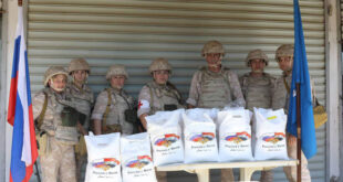 اللاذقية-سانا وزع مركز التنسيق الروسي في قاعدة حميميم مساعدات غذائية على أهالي
