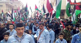 اللاذقية-سانا نظمت الفصائل الوطنية الفلسطينية في مخيم العائدين في اللاذقية اليوم مسيرة شعبية بمناسبة ذكرى يوم الأرض ووقفة احتجاجية تنديداً بإعلان الرئيس الأمريكي دونالد ترامب حول الجولان السوري المحتل. وجابت المسيرة شوارع المخيم وعزفت خلالها الفرقة النحاسية المعزوفات الوطنية ورفع …