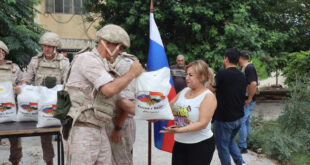اللاذقية-سانا وزع مركز التنسيق الروسي في قاعدة حميميم اليوم نحو 5 أطنان من المساعدات الغذائية والألبسة