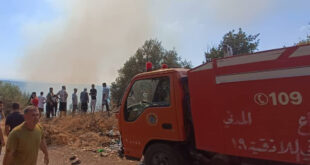 اللاذقية-سانا أخمدت قوى الإطفاء في اللاذقية اليوم حريقاً كبيراً شب في أراض زراعية بقرية وادي اللدينة “حرف نفسا” التابعة لناحية الفاخورة بريف اللاذقية.