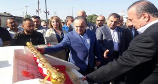 اللاذقية-سانا واصل رئيس مجلس الوزراء المهندس عماد خميس يرافقه وفد حكومي زيارته إلى محافظة اللاذقية حيث وضع حجر الأساس اليوم لمشروع سوق مكاتب بيع وشراء السيارات في المنطقة الصناعية على مساحة 40 دونما وكلفة تقديرية بنحو مليار و 657 مليون …
