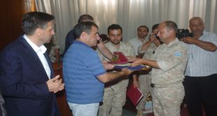 اللاذقية-سانا بمناسبة ذكرى تأسيس الجيش العربي السوري وعيد البحرية الروسية قامت محافظة اللاذقية اليوم بتكريم 40 أسرة شهيد و40 جريحا من بواسل الجيش العربي السوري وعدد من الجنود الروس الذين رووا بدمائهم تراب سورية. ونوه المحافظ ابراهيم خضر السالم في كلمة …