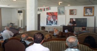 اللاذقية-سانا نظم فرع نقابة الأطباء باللاذقية محاضرة للمحلل السياسي اللبناني ميخائيل عوض بعنوان (التحولات الدولية والاقليمية على وقع الانتصار السوري) وذلك في قاعة مبنى المحافظة بمناسبة ذكرى تأسيس الجيش العربي السوري. وقال عوض خلال محاضرته إن ” الحرب على سورية …