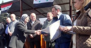 اللاذقية-سانا وزعت مديرية الزراعة في محافظة اللاذقية اليوم 28 منحة إنتاجية بقيمة 7 ملايين ليرة سورية على الأسر المحررة من ريف اللاذقية الشمالي لتكون نواة مشاريع إنتاجية حسب رغبة المستفيدين. وأوضح محافظ اللاذقية إبراهيم خضر السالم في كلمة له خلال …