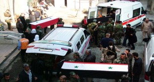 اللاذقية-السويداء-سانا بمشاركة رسمية وشعبية حاشدة تم اليوم في اللاذقية والسويداء تشييع جثامين 26 شهيدا من أبطال حامية مطار كويرس قضوا دفاعا عن المطار والكلية الجوية ضد اعتداءات إرهابيي تنظيم “داعش” في أوقات مختلفة خلال السنوات الثلاث الماضية. ففي اللاذقية شيع …