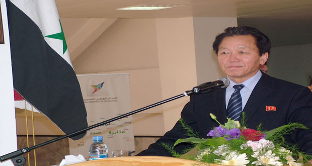 اللاذقية-سانا زار اليوم سفير جمهورية كوريا الديمقراطية الشعبية بدمشق جانغ ميونغ هو وأعضاء السفارة ترافقهم فعاليات حزبية ورسمية ضريح القائد الخالد حافظ الأسد ووضع أكليلا من الزهور على الضريح. ودون السفير كلمة في سجل التعازي جاء فيها.. أتمنى لسورية حكومة …