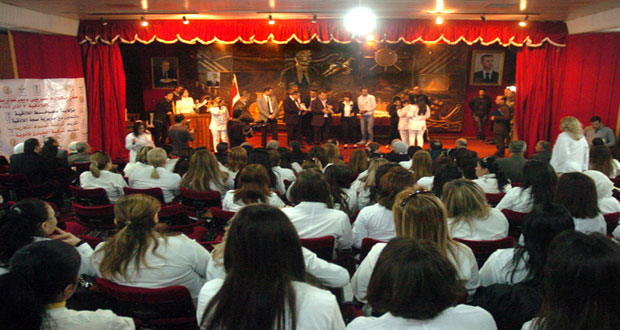 اللاذقية-سانا كرمت محافظة اللاذقية ومديرية الصحة اليوم بالتعاون مع شركتي الشموط التجارية والطارق للأدوية 101 من الكادر التمريضي في المشافي التابعة لمديرية الصحة بالمحافظة وذلك بمناسبة الذكرى الـ 52 لثورة الثامن من آذار. وحصل المكرمون على بطاقة “أنا سوري واعتز …