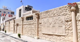 ريف دمشق-سانا على مدى 40 يوماً نفذ عدد من الفنانين التشكيليين ست لوحات جدارية تتحدث عن رموز تاريخية من الحضارات السورية