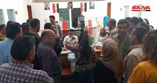 ريف دمشق-سانا توافدت أعداد كبيرة من المواطنين الى المركز الانتخابي بمشفى القلمون في النبك بريف دمشق للإدلاء بأصواتهم في الانتخابات الرئاسية. وأفادت مراسلة سانا بأن محيط المركز شهد منذ الساعة الأولى لبدء التصويت تجمعاً كبيراً للمواطنين بانتظار دورهم للدخول والادلاء …