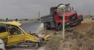 ريف دمشق-سانا توفي ثلاثة أشخاص بينهم طفل وأصيب اثنان آخران اليوم في حادث سير على طريق صيدنايا رنكوس بريف دمشق الشمالي. وأوضح مصدر في قيادة شرطة ريف دمشق لمراسلة سانا أن الحادث وقع على مفرق قرية بدا بين بلدتي صيدنايا …