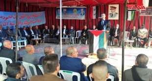 ريف دمشق-سانا بمناسبة الذكرى الـ103 لوعد بلفور نظمت اللجنة الشعبية العربية السورية لدعم الشعب الفلسطيني ومقاومة المشروع الصهيوني بالتعاون مع مؤسسة القدس الدولية-سورية وتحالف القوى الفلسطينية اليوم مهرجانا سياسيا وذلك في مخيم جرمانا بريف دمشق. وقدم مسؤول جبهة تحرير فلسطين …