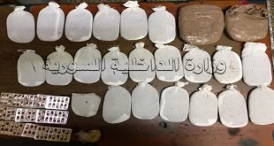 دمشق-سانا ألقى فرع مكافحة المخدرات بريف دمشق القبض على شخصين من مروجي المخدرات وضبط بحوزتهما نحو 5ر4 كيلوغرامات من مادة الحشيش وكميات من الحبوب المخدرة. وبينت وزارة الداخلية في بيان تلقت سانا نسخة منه اليوم أن فرع مكافحة المخدرات في …
