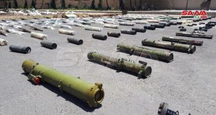 ريف دمشق-سانا عثرت الجهات المختصة على صواريخ مضادة للدروع وعدد كبير من القذائف والأسلحة الرشاشة بينها أمريكية الصنع وأكثر من نصف مليون طلقة متنوعة العيارات ومئات الكيلوغرامات من الحشيش المخدر خلفتها التنظيمات الإرهابية في مخابئ وأوكار تحت الأرض قبل اندحارها …