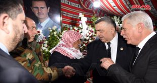 ريف دمشق-سانا بتكليف من السيد الرئيس بشار الأسد قدم رئيس مجلس الشعب حموده صباغ اليوم التعازي لأسرة عضو مجلس الشعب جورجينا يوسف رزق في مدينة النبك بريف دمشق والتي وافتها المنية مساء أول أمس إثر حادث سير. ونقل صباغ خالص …