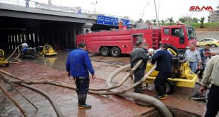 دمشق-سانا تواصل الورشات الفنية التابعة لمحافظتي دمشق وريف دمشق العمل على إزالة الطمي والمياه التي تجمعت في عدد من الأنفاق ما أدى إلى تعطل حركة السير في بعض الطرقات واختناقات مرورية في أخرى. وشهدت دمشق وريفها أمس هطول أمطار غزيرة أدت …