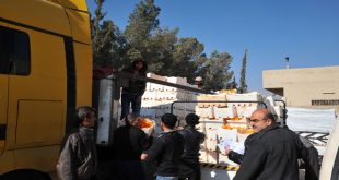 ريف دمشق-سانا تسلم فرع السورية للتجارة بمحافظة ريف دمشق صباح أمس 160 طنا من الحمضيات مقدمة من أهالي محافظتي اللاذقية وطرطوس إلى أسر الشهداء في المحافظة وذلك استكمالا لحملة دعم أسر الشهداء التي أطلقتها رئاسة مجلس الوزراء. وأوضح مدير فرع السورية …