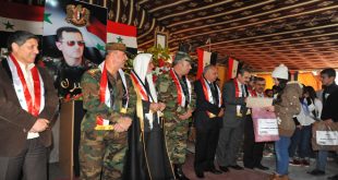 ريف دمشق-سانا أحيا الحرس القومي العربي ذكرى يوم الشهيد القومي العربي ضمن احتفال تكريمي في بلدة أشرفية صحنايا بريف دمشق وتضمن الحفل مسيرا لجنود الحرس القومي العربي وعروضا عسكرية وفنية هتفوا فيها “قادمون يا أقصى” و”لبيك يا قدس”و”الموت لاسرائيل” وأدوا قسم …