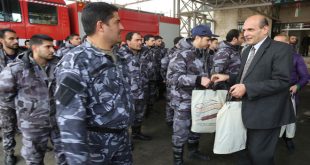 ريف دمشق -سانا تقديرا لجهودهم في درء المخاطر عن الناس وحماية أرزقاهم كرم تجمع محبي القائد الخالد حافظ الأسد فوج إطفاء مدينة عدرا الصناعية في محافظة ريف دمشق وقدموا لهم الهدايا الرمزية عربون شكر للمهام الكبيرة التي يقومون بها على …
