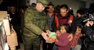 ريف دمشق-سانا تم اليوم توزيع مجموعة من الهدايا والألعاب مقدمة من أطفال جمهورية روسيا الاتحادية إلى الأطفال المقيمين في مركز الإقامة المؤقتة في بلدة سعسع بريف دمشق. وقال ممثل مركز التنسيق الروسي في حميميم بالمنطقة الجنوبية العقيد يوري في تصريح …