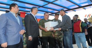 ريف دمشق-سانا دعما للشعب السوري في ظل ما يتعرض له من إرهاب دولي وزعت جمهورية روسيا الاتحادية اليوم دفعة من المساعدات الإنسانية على عدد من أسر شهداء وجرحى ومختطفي الجيش العربي السوري في مساكن الديماس العسكرية وذلك بالتعاون مع محافظة …