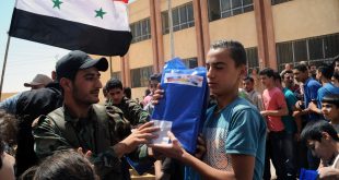 ريف دمشق-سانا كرمت حركة شباب العودة الفلسطينية اليوم 100 أسرة من ذوي شهداء الجيش العربي السوري تقديراً لتضحيات أبنائهم في مواجهة الإرهاب التكفيري ووفاء لدمائهم التي سفكت فداء لسورية وذلك ضمن مهرجان وطني في خربة الشياب بريف دمشق. وأكد الأمين العام …