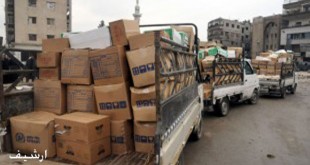 دمشق -سانا بدعم من الحكومة السورية وبإشراف اللجنة العليا للاغاثة واصلت الهيئة العامة للاجئين الفلسطينيين العرب ووكالة الامم المتحدة لاغاثة وتشغيل اللاجئين الفلسطينيين /الاونروا/ توزيع المساعدات الغذائية والطبية على أهالي مخيم اليرموك الذين غادروا المخيم هربا من جرائم التنظيمات الارهابية …