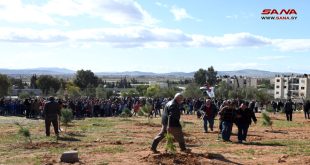 دمشق-سانا نفذت مديرية الزراعة في محافظة دمشق وريفها حملة تشجير في منطقة السومرية بأنواع مختلفة من الغراس،