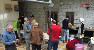 ريف دمشق-سانا بدعم وتمويل وزارة الأوقاف وجهود مجموعة من المتطوعين في جمعية السراج الخيرية بمدينة عربين بريف دمشق، يتم يومياً إعداد أكثر من 1300 وجبة إفطار
